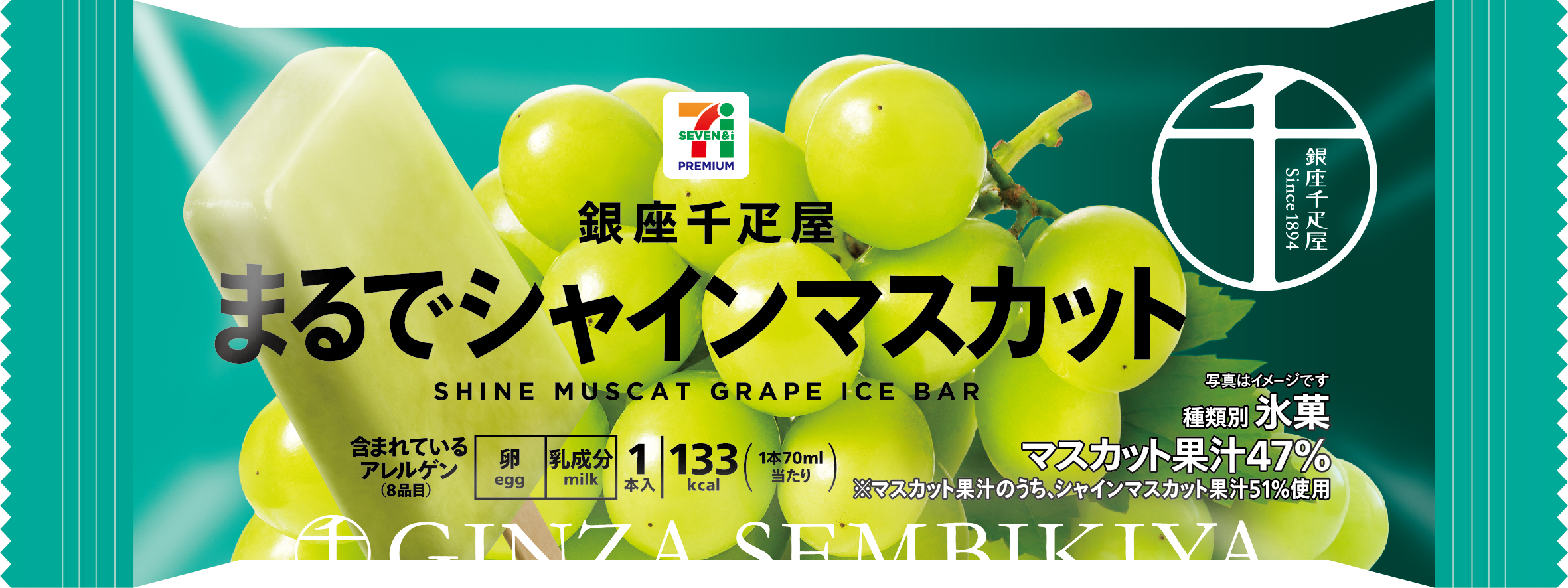 | 冷凍した果実を食べているような「まるでシリーズ」のシャインマスカット味のアイスバーです。 |