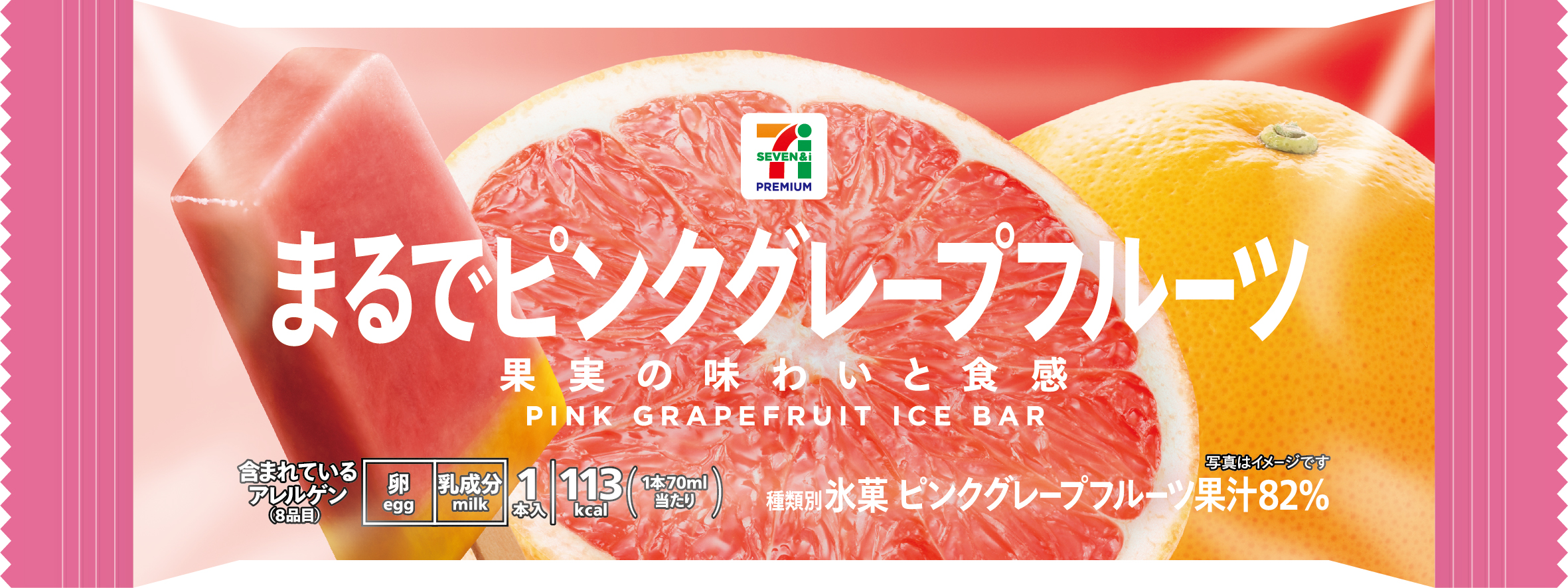 | 冷凍した果実を食べているかのような、まるでシリーズの、ピンクグレープフルーツ味のアイスバーです。 |